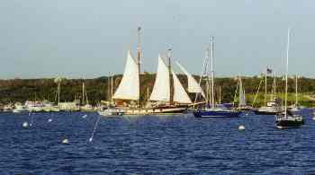 The currents around the tip of the island are strong and we were fighting them on the way out. Our plan was to wait till 10 o'clock to leave. (Any one who has sailed with Roger, understands how unusual that is) That way the current would be with us most of the way home We were hoping for a Southerly to take us home, but the front didn't move as fast as expected, so we were faced with a 20 knot northeast wind to beat into for the first 3 hours. Current and wind were opposing each other so by the time we reached Newport the boat was covered with salt.