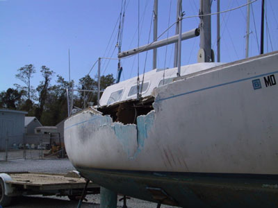 We were fortunate to have Sea Luff (the Hunter 26 formerly Charis) pulled prior to the storm.