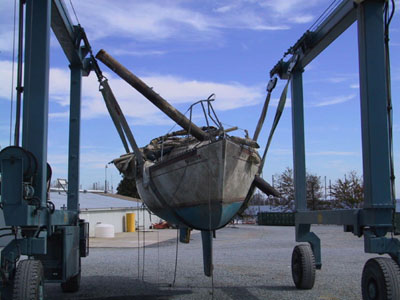 There was a 34 foot sailboat in the cradle with a 20 foot piling stuck