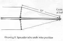 The end of the spreader tubes should be located as shown in Drawing 8. The measurement should be taken with the wire pulled tight. Make sure the spreader end fittings are clamped securely to the upper wires. Don't tighten the small screws too tight or the plastic tips may strip.