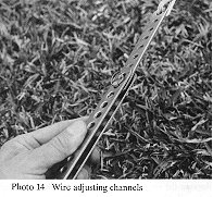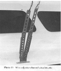 Attach a wire adjuster channel to the bottom end of the top, middle and bottom mast support wires, and to the Photo 15 Wire adjuster channel attachments rear mast support wire. (Photo 14)