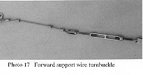 Attach a turnbuckle to the forward mast support wire as shown in Photo 17. Adjust the turnbuckle so that it is 1/3 closed.