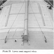 After the mast hinge bolt is installed, adjust the lower mast support wires as shown in Photo 20. This will keep the mast from falling sideways as it is raised.