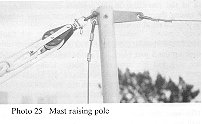 Now look around to make sure all mast wires are clear and free of tangles. Again, make sure you are clear of all overhead power lines and that the mast won't hit them when it goes up or when you have to move the trailer after the mast is up. Raise the mast by pulling on the line. See Photo 22.