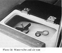 Just below the cabin access ladder, there is a small access door that contains the water tank valve and air vent. (Photo 28)