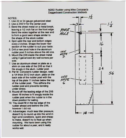 In order to improve the handling and safety of the 26C it is advisable to modify the rudder to make it a more ballanced and larger rudder.