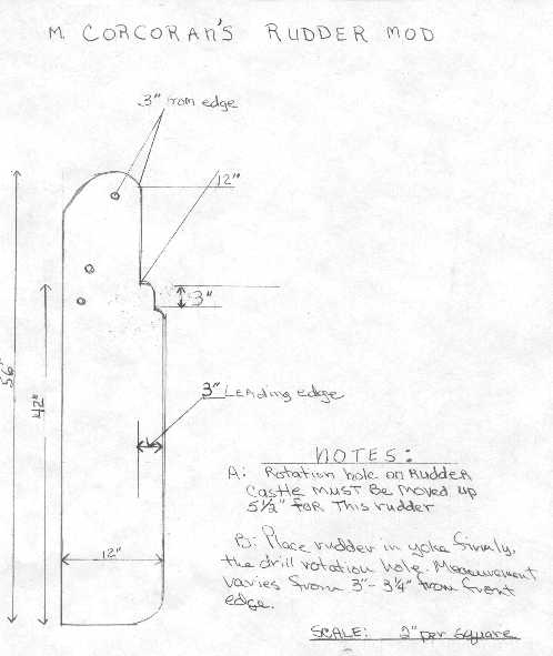3. Buck Robbins modified his rudder by inserting a piece of wood into the rudder. His description is below.