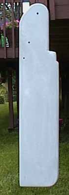5. There has been talk about using the original rudder and bending sheet metal around it. The sheet metal could extend 3" beyond the original and be epoxyied and screwed to the fiberglass. This would allow adding 4 inches to the length for better control. The bottom could have a wood piece shaped to give strength to the bottom or the bottom few inches could be filled with foam. This would brevent the metal from being damaged if it hit bottom.
