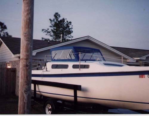 #1 in driveway in pensacola with the mast removed just got my boat back from Islander Marine (canvas place who made my covers)
