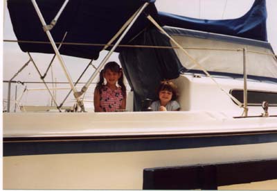 #7 side of bimini. the flap has 2 zippers (completely removable) so niether the bimini nor the pop top encl has to have a flap in place if i am just using the bimini or just the pop top encl by itself. Becky and Rachel enjoying the sunshine. daughter #3 just a twinkle at this point.