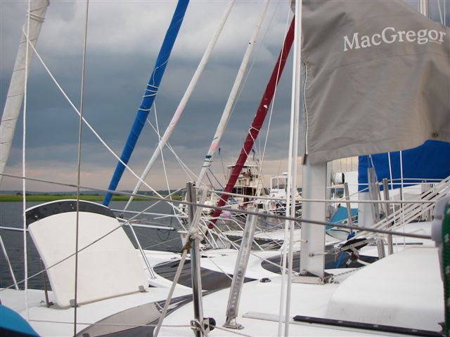 One last comment. There was one boat we saw little of - Richard and Lynn Strohman on Sea Tramp. They were smart and headed out to sea on Saturday and met the southerly. They arrived sailing into Potter Cove right before dark. They headed out the Sakonnet River on Sunday and arrived at the launching ramp to haul around 6pm - after all the others had left. That's what I call a sailing weekend.