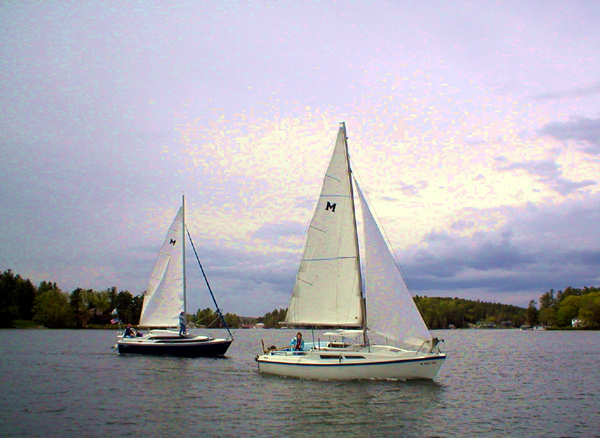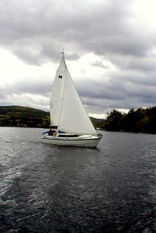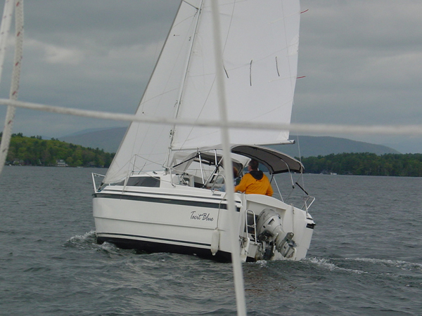 I chickened out on my first solo sail and sailed up with Al and Karen and back with Dan and Linda. The trip back had a first for a Winni rendezvous. We had a rain shower (definitely not a first ) and then a beautiful rainbow (that was a first).