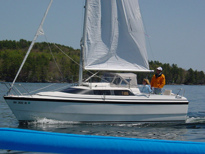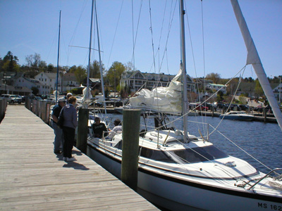 The first NETS/Moane rendezvous of the year was held at Fay's Marina. After quite a bit of rain, Friday cleared up, though it was still unseasonably cold. I was last to arrive at about 4pm. Chuck Healy, a new member, "volunteered" to make arrangements for us at Fay's and was on hand to greet us. George Lavoie and his friend Ron came down from Canton Maine. Ken Fordham and his wife Marilyn and friend Josiah, who keep their new-to-them Catleina 25 at Fays, were there getting their boat ready for the summer. Chuck and his wife Helen and their younger daughter, Brianna brought their boat up from Ames Farm for the weekend. And lastly Ed Goodhue brought his boat up from the Cape and offered me his "guest cabin" for the weekend. After rigging we went out for dinner at the Sawyers and then George and Ron, Ed and I hunkered in for a verry cold night. Saturday dawned chilly, with light winds.