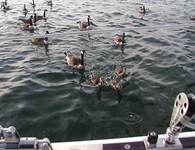 My wife Kathie watched the mooring about 30 feet off our port side move past our boat. She shouted the alarm - we are moving! Sure enough, the entire rafting group was being pushed towards the shore by the still wind.