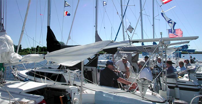 It was great chatting while rafted. Many people moved to different boats, requesting permission to cross middle boats along the way. Snacks were plentiful, stories of sailing greatness even more so, and in general everyone had a good time as far as I could see. There was even several tours of boat mods that went on. It was plenty fun!