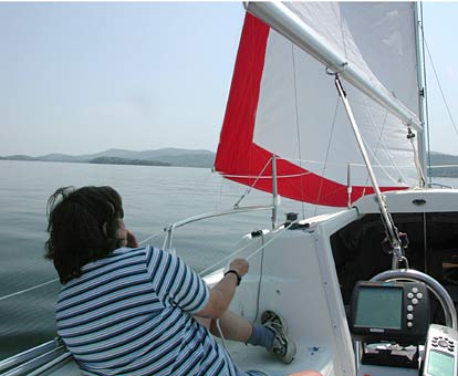 I invited Barb to sail with me, and we took off to find some wind. Now and again we found some, but overall, not much more than a occasional puff. Still, it was great to be on the water. I had not seen Barb since Lake Champlain so we NE-TS webmasters caught up on the year.
